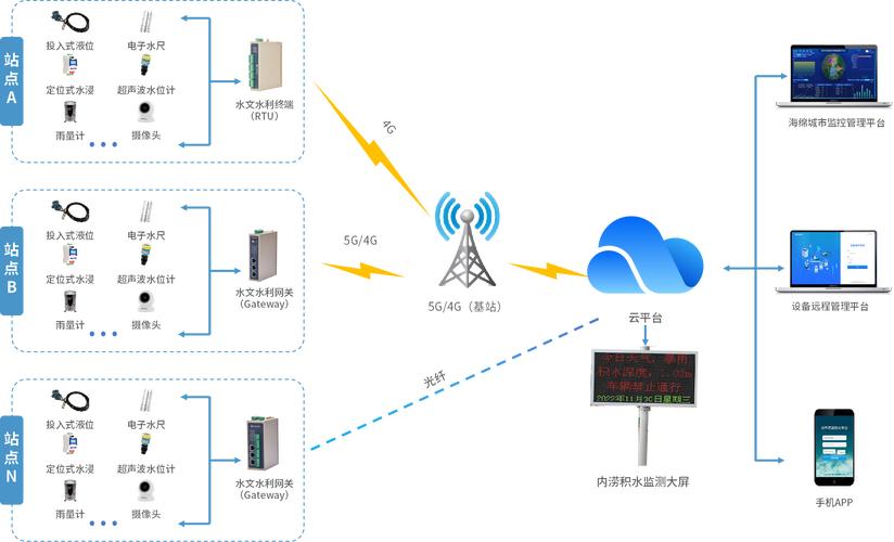 依托4G/5G網(wǎng)絡(luò)高速傳輸能力,4G/5G物聯(lián)網(wǎng)方案(DTU+物聯(lián)網(wǎng)卡)實(shí)現(xiàn)監(jiān)測數(shù)據(jù)秒級上傳與指令雙向交互:水位、流量、降雨量、土壤含水量等數(shù)據(jù)實(shí)時同步至云端管理平臺,管理人員通過電腦或手機(jī)APP即可實(shí)時查看全域數(shù)據(jù);設(shè)置預(yù)警閾值(如水位超警值、降雨量>50mm/6h、土壤含水量<15%)后,平臺立即觸發(fā)聲光預(yù)警、短信推送、APP告警,同時精準(zhǔn)標(biāo)注風(fēng)險點(diǎn)位與發(fā)展趨勢。某沿江城市監(jiān)測點(diǎn)通過DTU實(shí)時上傳水位數(shù)據(jù),發(fā)現(xiàn)2小時內(nèi)水位上漲1.2米,平臺立即啟動三級預(yù)警,下游社區(qū)提前3小時轉(zhuǎn)移群眾,無人員傷亡;某灌區(qū)通過墑情實(shí)時數(shù)據(jù),精準(zhǔn)調(diào)度灌溉泵站,灌溉用水浪費(fèi)率降至8%。