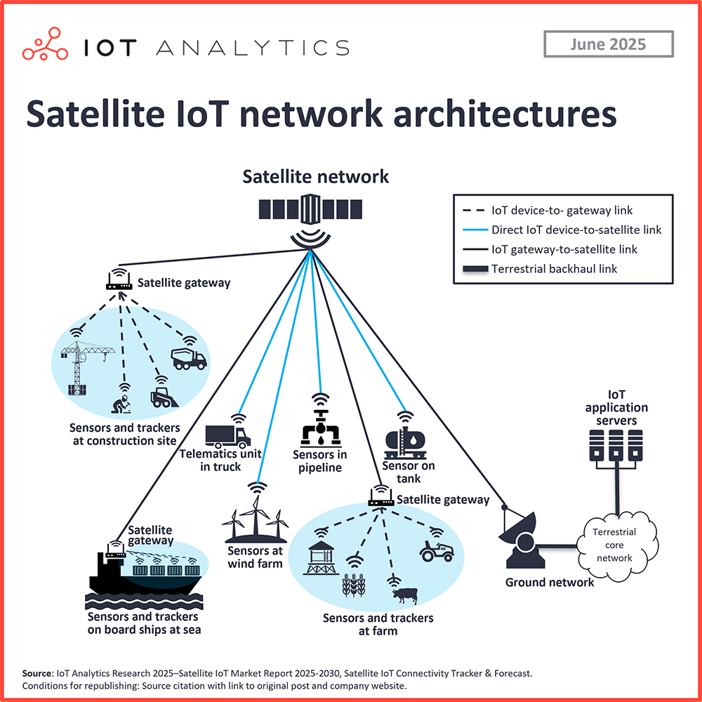 典型衛(wèi)星物聯(lián)網(wǎng)連接場景圖解(來源:IoT Analytics)