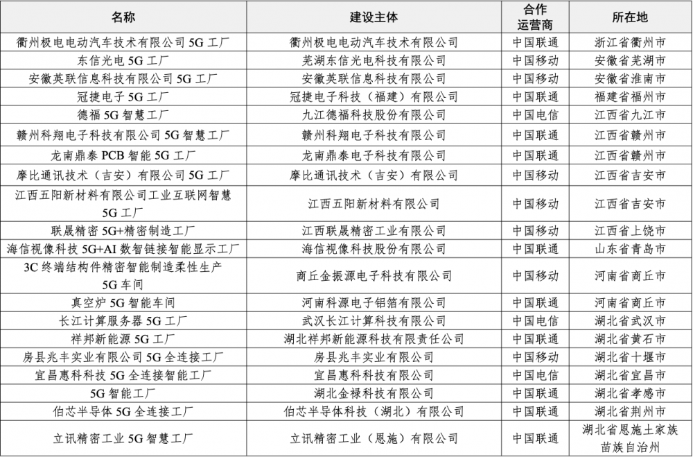 其中,計算機、通信和其他電子設(shè)備制造業(yè)的入選5G工廠包括: