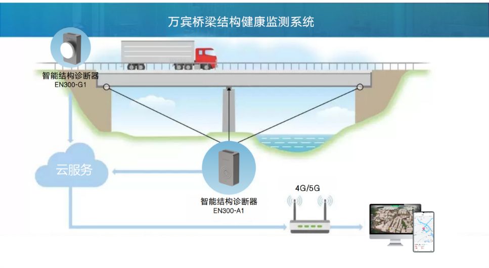 應(yīng)用層(云端平臺(tái)):云端平臺(tái)對(duì)傳輸數(shù)據(jù)進(jìn)行存儲(chǔ)、分析與可視化展示,通過結(jié)構(gòu)力學(xué)算法與 AI 模型識(shí)別橋梁異常狀態(tài)并觸發(fā)預(yù)警;運(yùn)維團(tuán)隊(duì)通過平臺(tái)查看預(yù)警信息、制定處置方案、跟蹤維修進(jìn)度,形成 “數(shù)據(jù)采集 - 傳輸 - 分析 - 預(yù)警 - 處置” 的閉環(huán)。